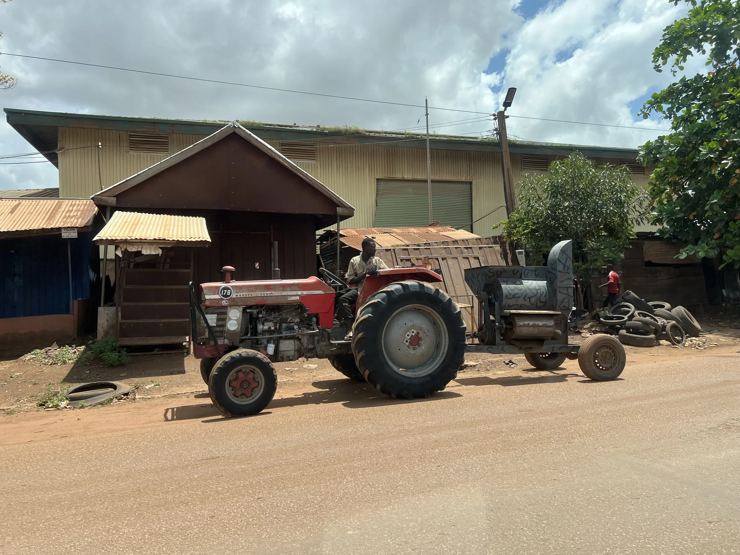 As I drove between Tamale and Yendi, I passed multiple tractor and agricultural machinery dealers along the road. Mechanization saves time and reduces backbreaking physical labor—it's transformative for farming communities, and especially for women whose time is burden by unpaid care work. Access isn't equal. Even when tractor time is rolled into an ag loan product, women still struggle to secure it, especially once men begin using the equipment. I listened as women shared how they pool their resources to rent "motorkings"—motorbike-powered flatbeds—to transport their goods to market or to agricultural processors they work with. They're finding creative solutions, but they're working twice as hard for half the access.